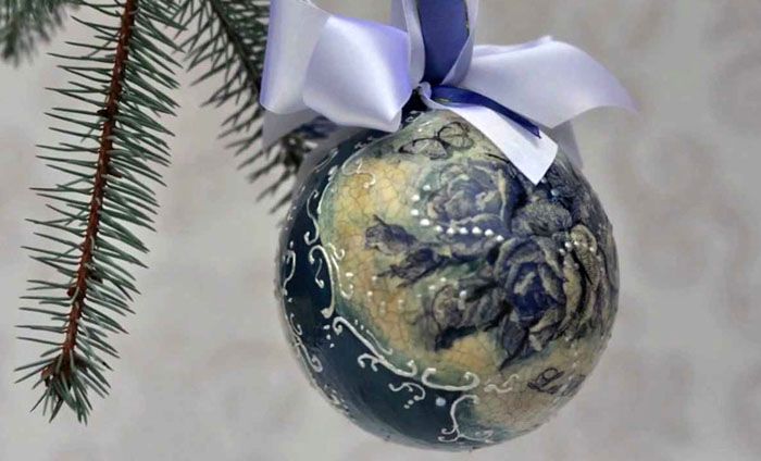 Bagaimana untuk melakukannya sendiri bola decoupage untuk Tahun Baru
