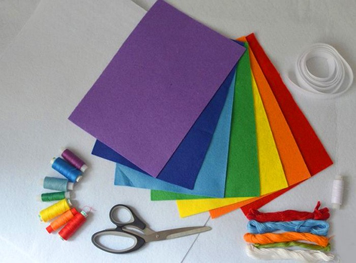Untuk menjadikan bintang, kami mengambil dua warna benang, benang benang agar sesuai dengan salah satu warna, gunting zigzag atau jalinan, pengisi (anda juga boleh mengambil bulu kapas).