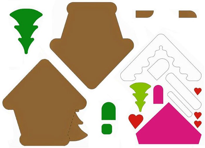 Mari gunakan templat untuk membuat hiasan yang ringkas dan selesa! Jangan lupa membuat dua bahagian untuk setiap elemen!