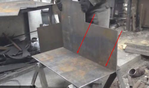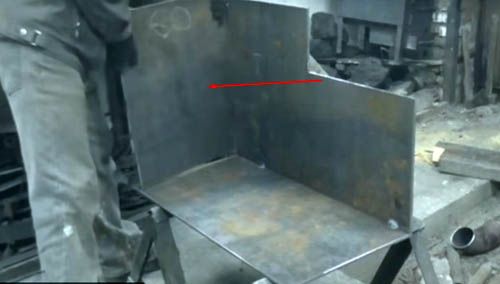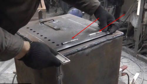 Bahagian akhir kerja adalah mengimpal pengikat untuk parut abu dari sudut logam dan membuat kaki untuk dapur. Tingginya sekurang-kurangnya 45 sentimeter.