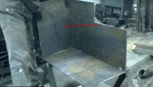 Baja apa yang terbaik untuk dapur? Hanya ada satu nasihat - semakin tebal bahannya, semakin baik. Keseluruhan persoalannya adalah mengenai anggaran, kerana helaian tebal itu mahal. Pilihan terbaik ialah ketebalan 2 mm. Buat tanda kapur pada lembaran sesuai dengan gambar. Berikut adalah contoh gambar dapur logam untuk mandi, yang senang dibuat dengan tangan anda sendiri.