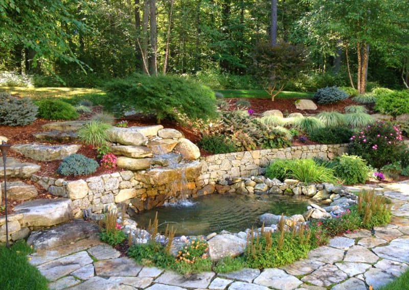 Semasa memilih tempat untuk takungan, anda harus segera memikirkan reka bentuk yang berdekatan: bagaimana anda akan menghampiri oasis, bagaimana zon ini dilihat dari pelbagai tempat di laman web ini.