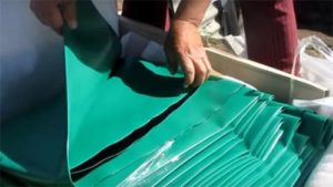 Penting untuk mengira jumlah filem dengan betul. Lebih baik membeli bahan dengan stok pada awalnya. Pengiraan dibuat dengan menambahkan lebar dan panjang bekas, kemudian menambahkan ukuran kedalaman dikalikan dua dengan nombor yang dihasilkan. Kemudian tambahkan 60 cm untuk elaun, yang akan diperbaiki di sepanjang garis pantai.