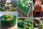 Tempat tidur bunga dan katil bunga dari bahan sekerap. Contoh foto katil bunga terang dan asli yang diperbuat daripada tayar kereta, botol plastik, kayu balak, batu dan bahan buangan lain dalam bahan khas.