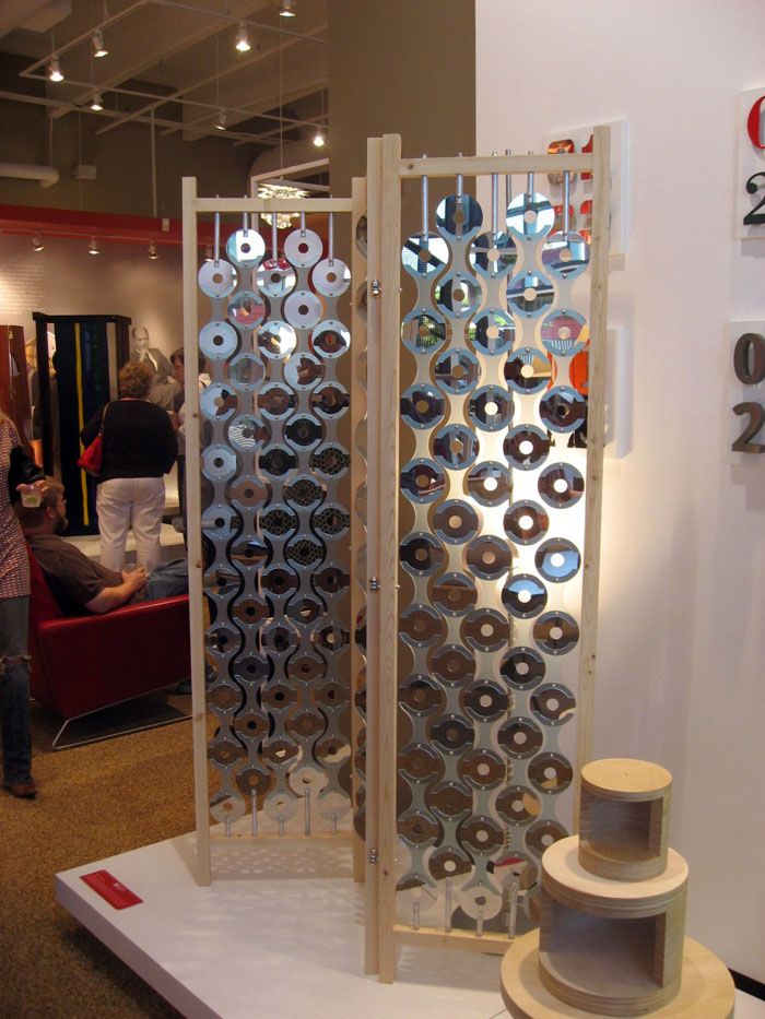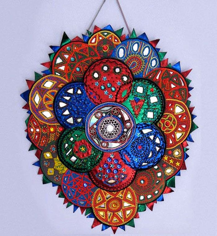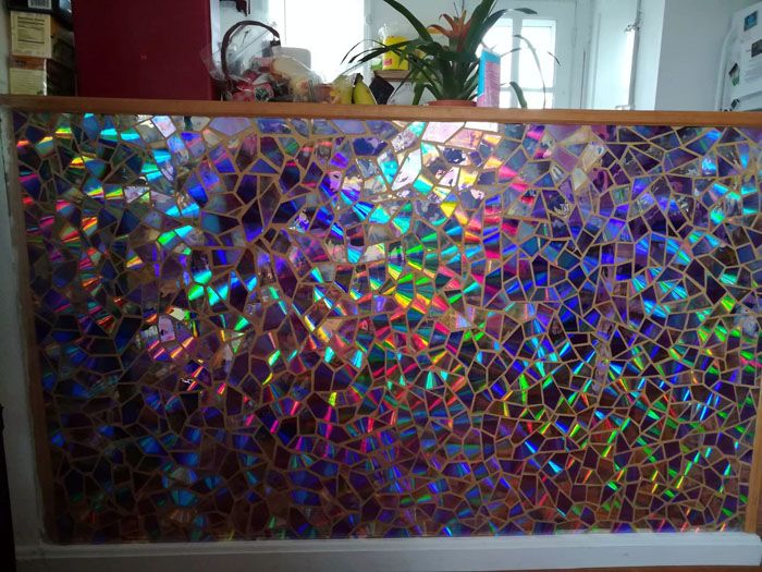 Panel dinding dapat dibuat dengan menghias cakera dengan kain terang, mengikatnya atau menempelkannya dengan filem berwarna