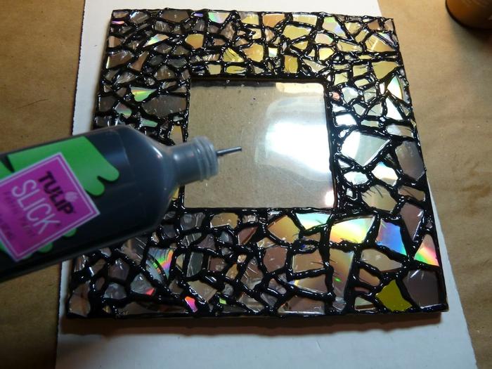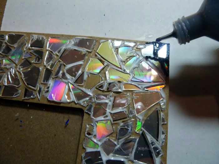 Apa lagi yang boleh anda buat dari CD rumah lama? Kami menawarkan untuk membina kerangka yang indah untuk cermin atau gambar. Proses kerja mudah: gam digunakan pada pangkal (bingkai cermin rata atau kadbod siap pakai) dan potongan dari tempat kosong diletakkan. Anda boleh memotongnya menjadi kotak atau memilih bentuk sewenang-wenangnya.