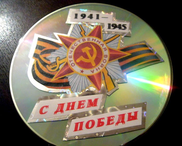 Kraf untuk percutian 9 Mei dikurangkan kepada reka bentuk ruang cakera dengan elemen dan simbol tematik.