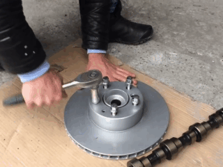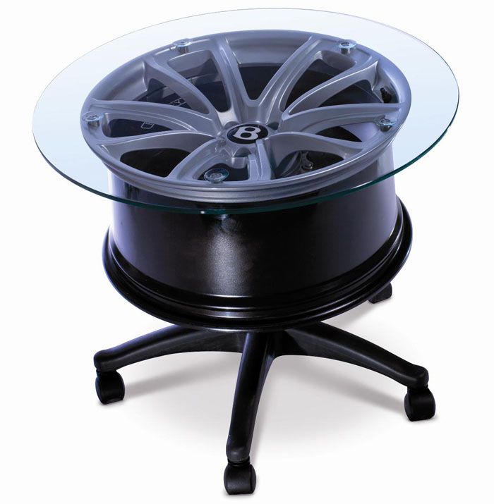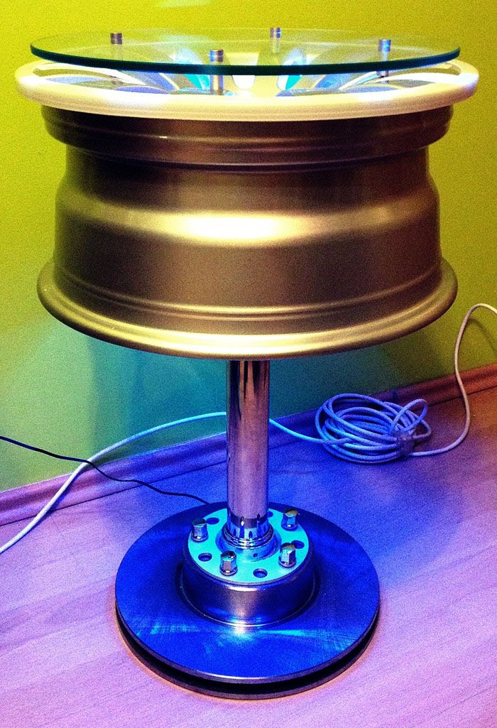 Kami membuat meja kopi dari cakera kereta dengan bahagian atas kaca.