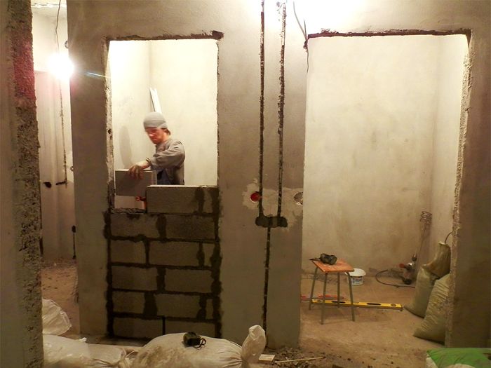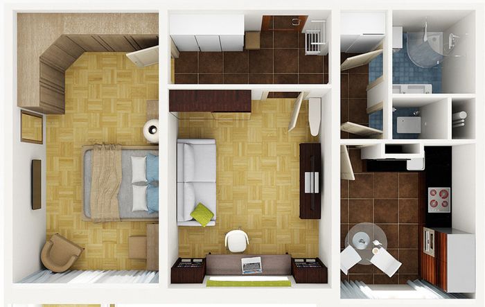 Asasnya ialah projek pangsapuri satu bilik. Bersamanya dia memulakan rancangan kerja. Terdapat beberapa pilihan untuk pemisahan: