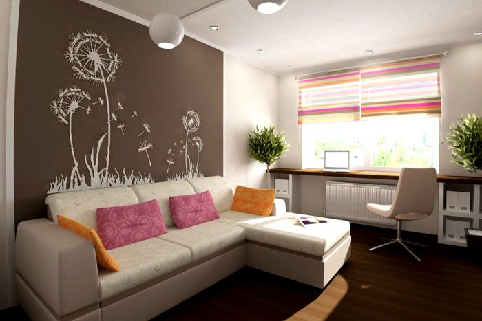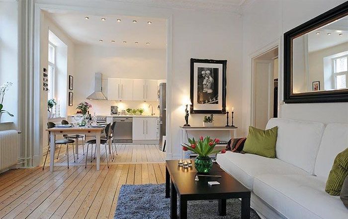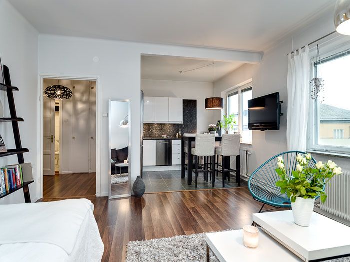 Menghias pangsapuri satu bilik tidak memerlukan kesulitan dalam hiasan. Elakkan garis berlebihan, warna besar. Sekiranya anda ingin membawa warna gelap, mainkan dengan kontras. Corak dan geometri harus dielakkan seboleh mungkin. Di bilik-bilik kecil, kesederhanaan dan minimalis dialu-alukan. Contoh yang baik adalah gaya Scandinavia atau Provence, yang disukai oleh wanita muda.