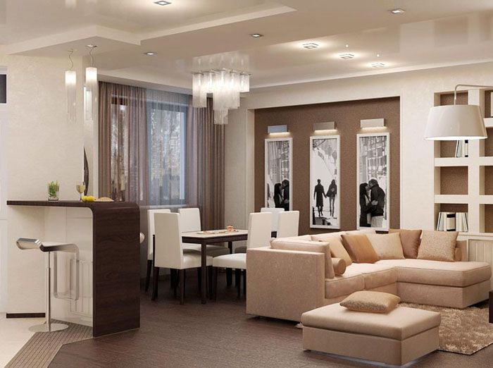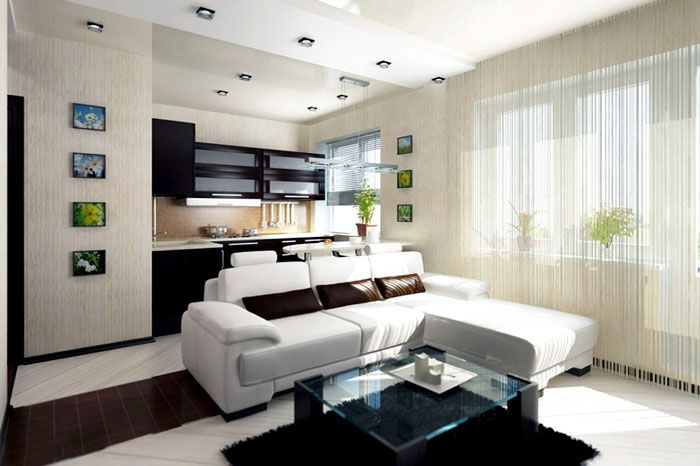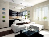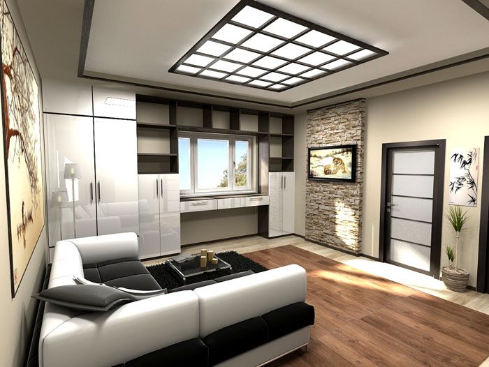 Ruang tamu adalah tempat di sebuah pangsapuri satu bilik di mana penghuni paling banyak menghabiskan masa. Semua yang ada di sini semestinya menggembirakan mata. Mari mulakan dengan siling. Bahan moden yang paling popular sekarang ini adalah: