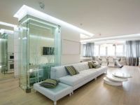 - partisi cermin dari siling ke lantai dengan pintu gelangsar membolehkan anda mengasingkan satu bilik dari bilik yang lain tanpa persetujuan pihak berkuasa penyeliaan, dan cermin akan menambahkan cahaya ke apartmen;