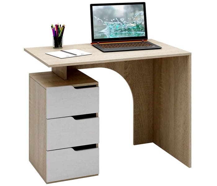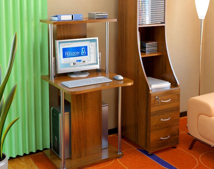 Mereka yang tidak dapat membayangkan bekerja di PC tanpa pencetak dan pelbagai alat tulis di tangan akan senang dengan model meja yang dipikirkan dengan teliti, di mana terdapat tempat untuk semua peranti penting.