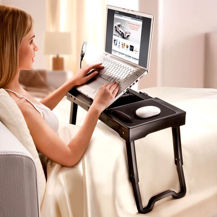 Sesiapa yang lebih suka atau terpaksa bekerja di tempat tidur boleh membeli pilihan tempat tidur atau tempat tidur dengan selamat. Tidak ada lagi ketakutan bahawa komputer riba akan terlalu panas dan enggan berfungsi - semuanya disediakan!