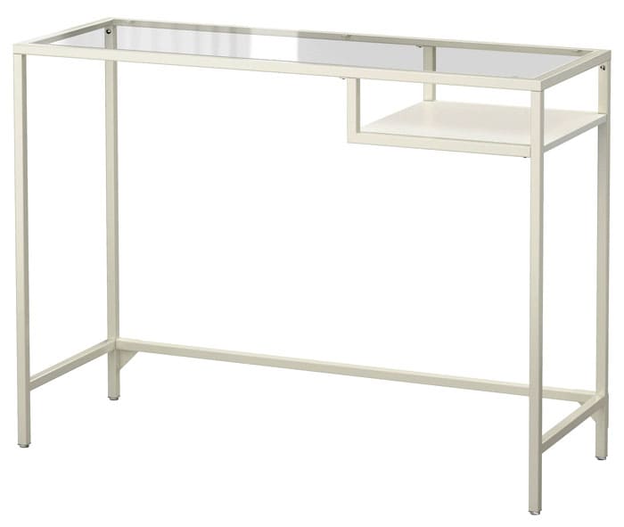 Ikea menawarkan model yang menarik dengan permukaan kerja yang indah yang diperbuat daripada logam dan kaca temper.
