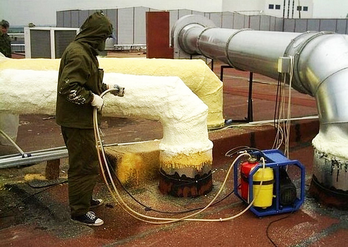 Bahan jenis ini diaplikasikan dengan penyemburan menggunakan mesin khas. Sesuai untuk permukaan apa pun, termasuk paip. Ia melekat dengan sempurna, kerana ia telah meningkatkan lekatan.