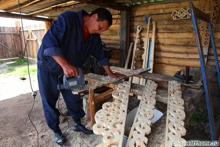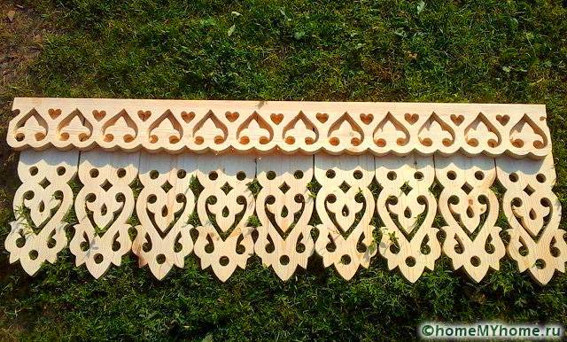 - с изрязана резба се прави накрайник, който прилича на дантела от дърво.