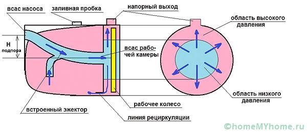 - Центробежни (вихрови) - те се отличават с незначителна дълбочина на засмукване (до 8м), висока глава, ниска производителност.Всмукателната линия трябва да бъде изцяло напълнена с вода, за да стартира такова устройство. Високото ниво на шум ги прави неподходящи за битова употреба.