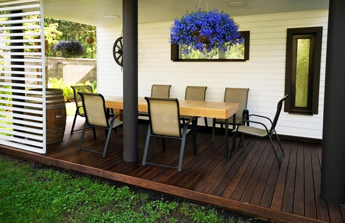 Massief houten terrasdelen moeten, ondanks de speciale behandeling, periodiek worden geïmpregneerd met speciale verbindingen: