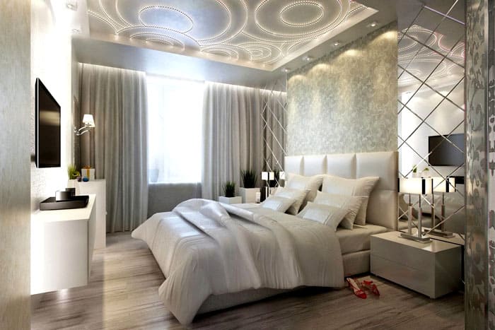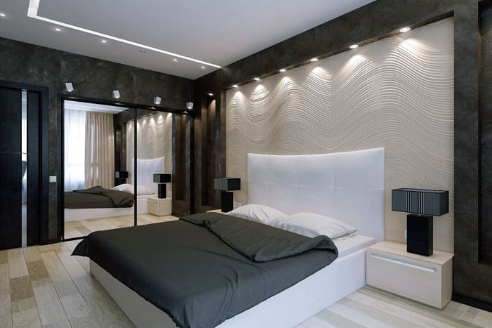 De slaapkamer is allang geen bewolkte en tedere ruimte meer. Tegenwoordig weerspiegelt deze kamer de ware gemoedstoestand van de eigenaar door hem op de juiste manier af te stemmen. Creatief ontwerp van de slaapruimte met de toevoeging van stijlvolle tinten en accessoires wordt aangemoedigd.
