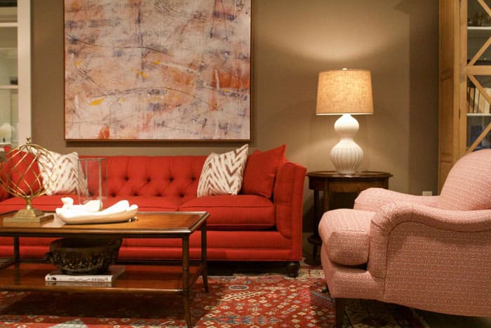 Gestoffeerde meubels kunnen nog steeds van leer zijn, maar tweed, onverwachte ornamenten en levendige kleuren met geometrische patronen worden in de mode.