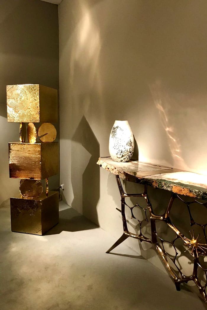 Tafels, stoelen, kleerkasten, nachtkastjes en consoles krijgen een nieuwe look met glas en metalen afwerkingen. Het houten oppervlak is niet in perfecte staat verwerkt, waardoor textuur en textuur duidelijk zichtbaar blijven.