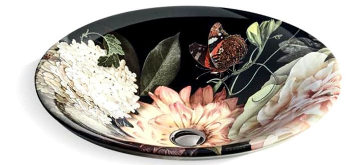 Wit sanitair heeft plaatsgemaakt voor zulke originele en kleurrijke oplossingen. Het belangrijkste is, terwijl je de gootsteen bewondert, vergeet niet waarom je naar de badkamer bent gekomen.