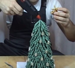 DIY kerstboom gemaakt van draad en lijm: een masterclass met een foto van het maken van een platte, volumineuze structuur, hoe je een kerstboom kunt versieren van draad en lijm, deskundig advies - in onze publicatie.