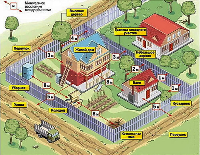 - naleving van de aanbevolen normen voor de afgelegen ligging van gebouwen van verschillende typen van het hek;