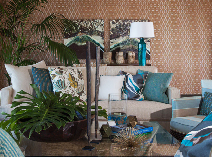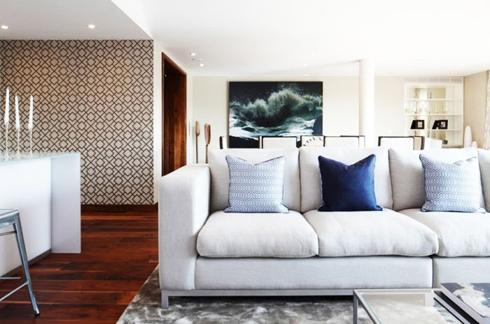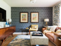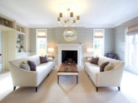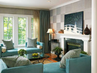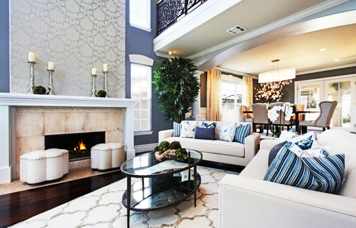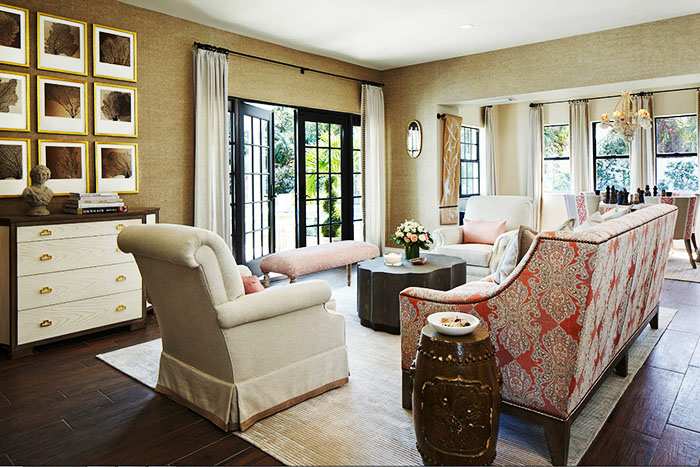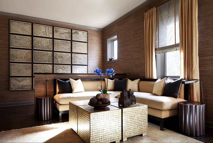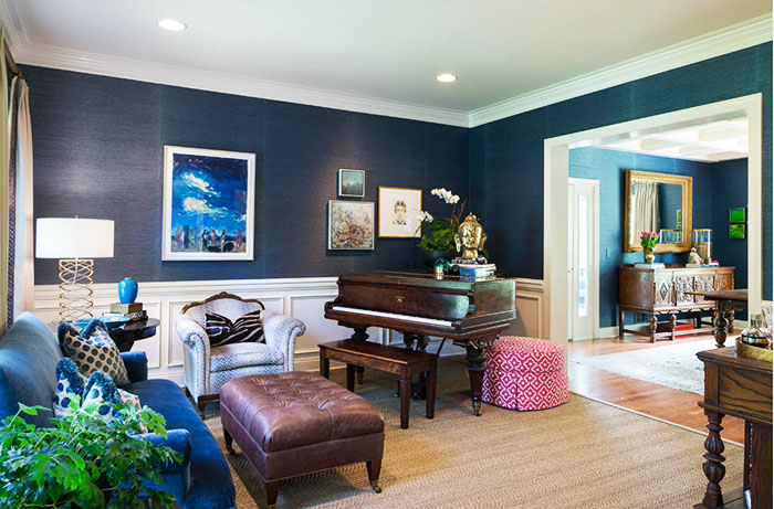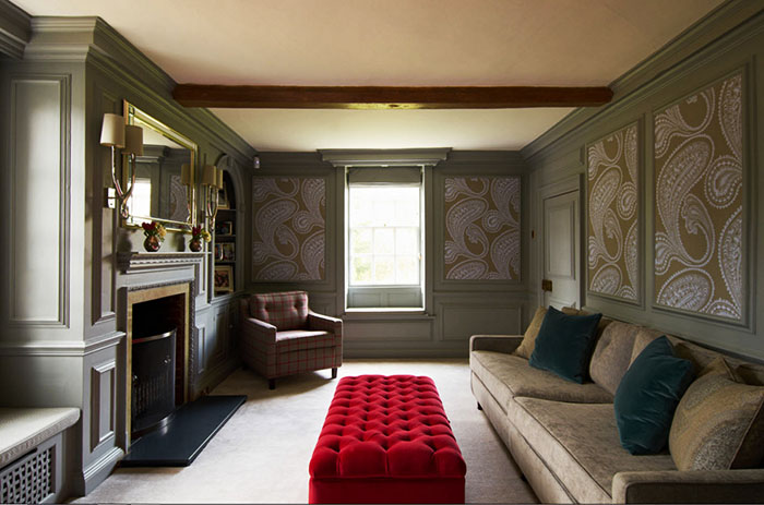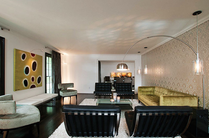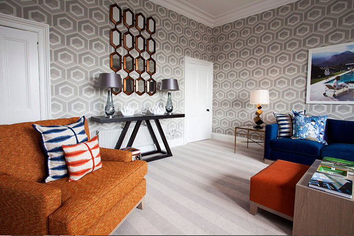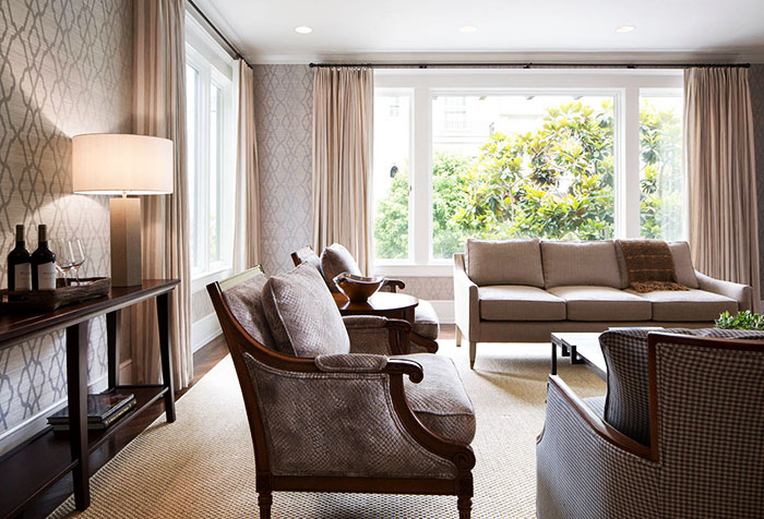 Изискан текстилен тапет за зала в частна къща, снимки на интериори: