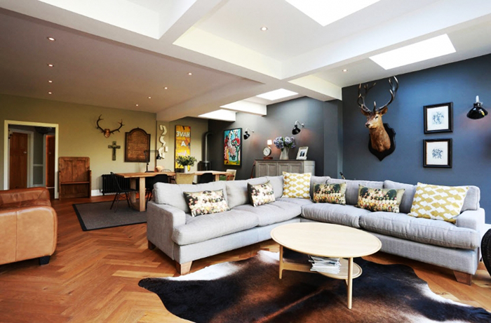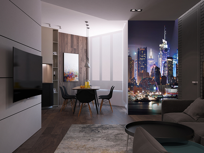 - необходимостта от комбиниране на зони за различни цели в хола: трапезария, кухня, кабинет, зона за игра и т.н. Този фактор тук има ключово влияние върху избора на материал или комбинацията от тапети в залата;