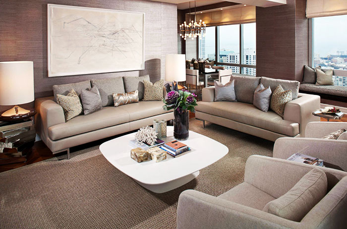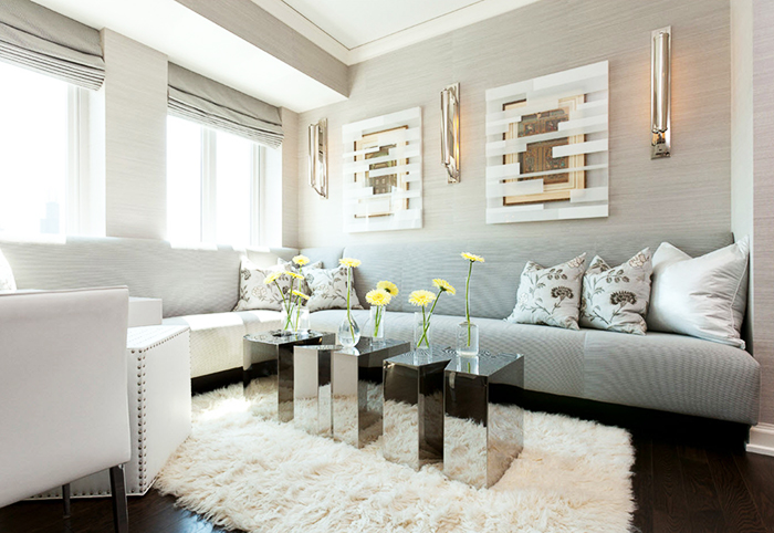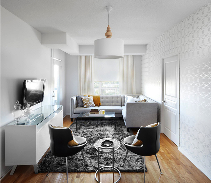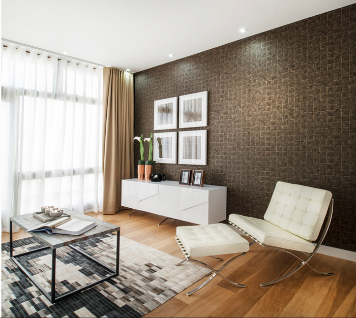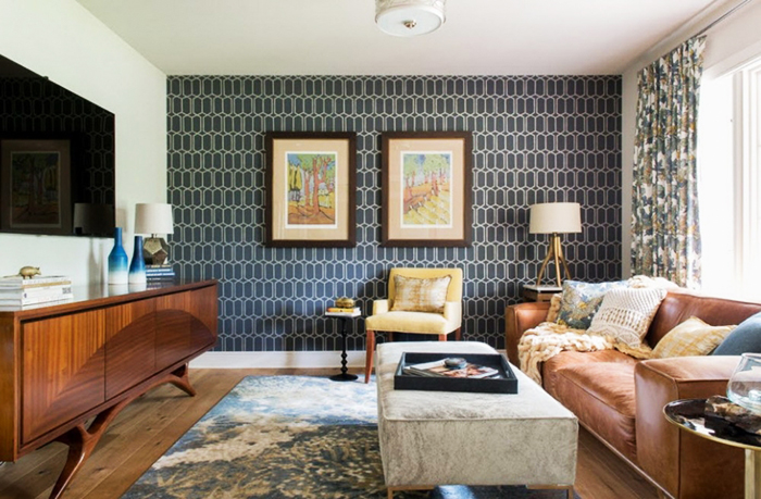Тапетът в модерен хол ви позволява хармонично да комбинирате елементи от различни стилове: от строг минимализъм до високотехнологични: