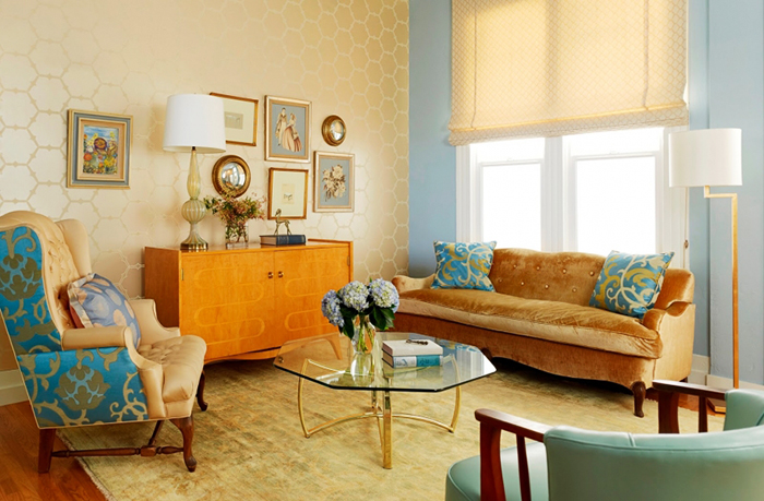 Комбиниран тапет в залата. В публикацията ще намерите критериите за правилен избор на платна, правилата за комбиниране на цветове, основните нюанси и правила за залепване при комбиниране, експертни съвети.