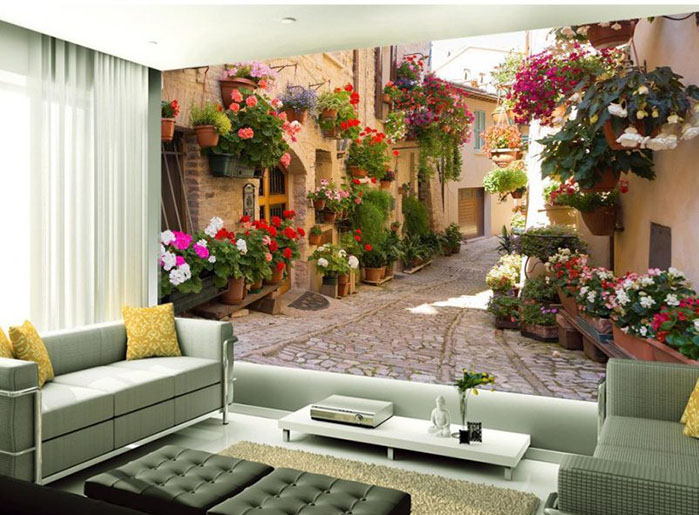 Всекидневната е идеален вариант за използване на 3D тапети, които прилагат различни нестандартни решения в интериорната декорация. В същото време могат да се използват както пълни, така и фрагментарни изображения, създавайки визуална илюзия за обем. Също така, доста оригинално решение е да се използва пачуърк технология когато поставяте тапети на една от стените на хола.