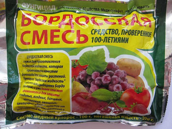 Почвата се обработва със смес от Бордо: гасена вар и меден сулфат.