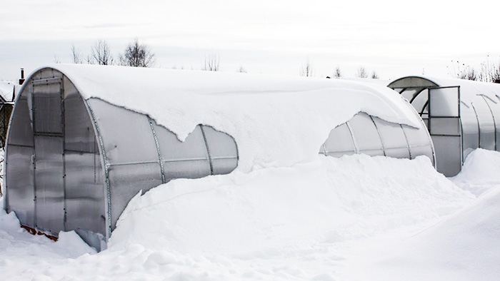 Опитните градинари препоръчват да се премахне сняг от покрива през зимата и да се донесе вътре в хребетите по-близо до пролетта