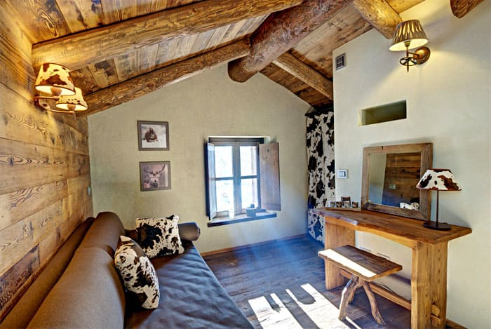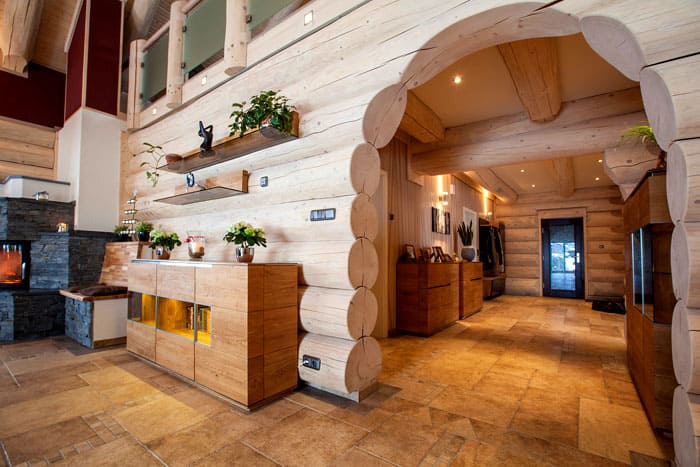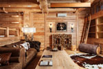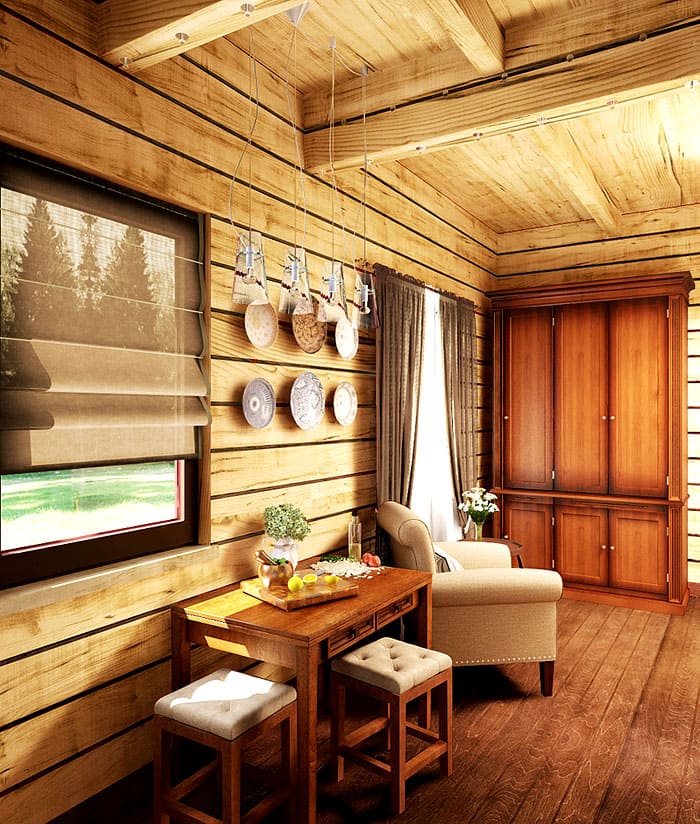 Интериорна декорация на дървена къща от бар в рустик стил със снимка в интериора