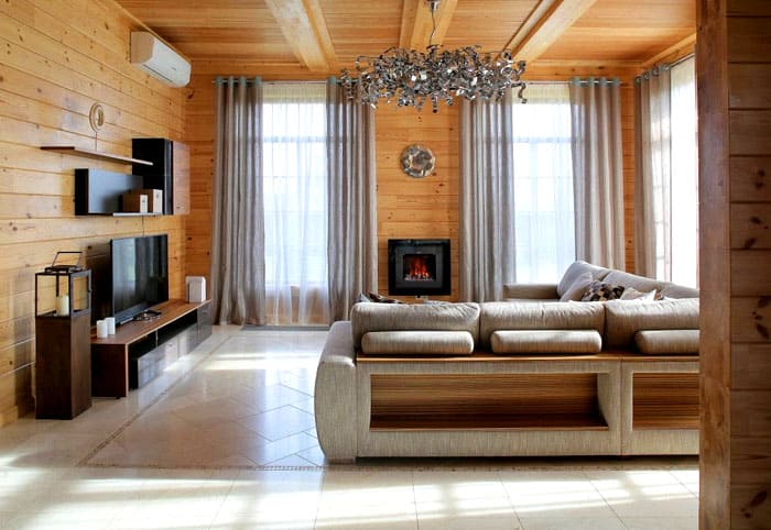 Вътрешна декорация на дървена къща в модерен стил