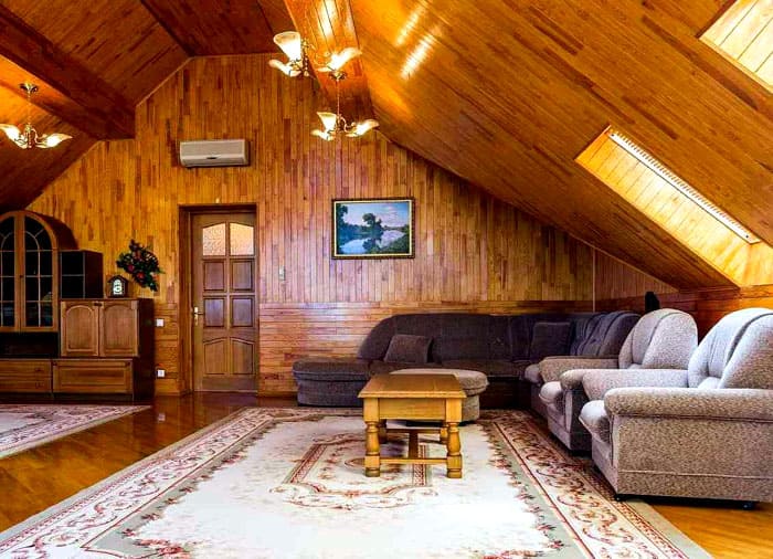 За някои стилове с изисквания за естественост е възможно таванът да бъде завършен само с дървени защитни покрития.