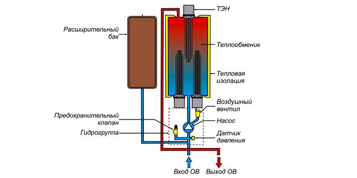 - Моделите TEN са традиционни опции. Нагревателният елемент се загрява от електричество и предава топлина към охлаждащата течност, която го прехвърля към монтираните радиатори. Това устройство е оборудвано с термостат, което ви позволява да поддържате температурата на определено ниво. Недостатъците включват скала, която се събира върху нагревателния елемент;