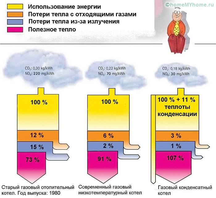 Внимание! Количеството топлообмен зависи не само от ефективността, но и от отделянето на топлина от определен вид гориво. Ето защо е необходимо предварително да се изчисли общата площ на къщата и да се направят топлинни изчисления.
