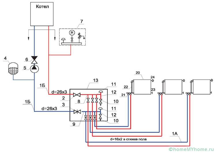 - Поради преминаването на охлаждащата течност през тръбите, тя губи температурата си и в резултат на това може да възникне значителен температурен градиент. Тоест помещенията, които са най-близо до котела, ще се затоплят повече от отдалечените.