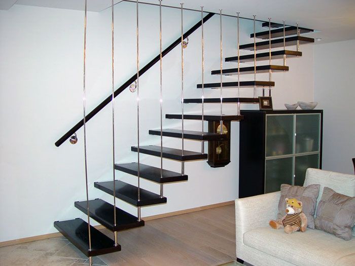 Такива решения се класифицират като евтини опции. Отделни части се сглобяват от прави части. Не е трудно да се създадат надеждни крепежни елементи на базата на стоманобетонни стъпала, тухлени основни стени.