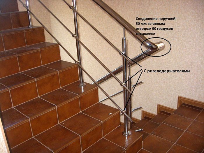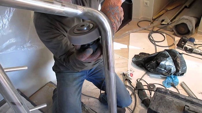 Независимото изпълнение на работните операции ви позволява да изберете правилното време без значителни ограничения. Спестяването от услугите на изпълнители ще помогне да се намалят общите разходи за парапети от неръждаема стомана. За висококачествено възпроизвеждане е по-добре да се използва относително прост монтаж, използващ лепилни фуги. Технологията на заваряване е много по-сложна.