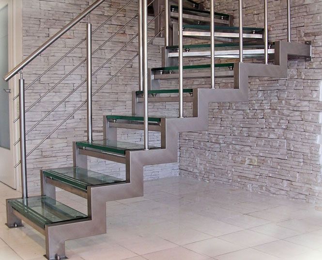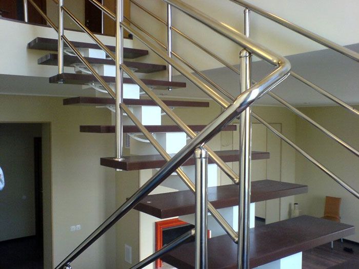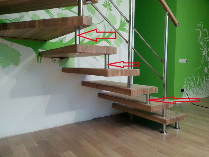 Една опора в централната част на стъпалата спестява строителни материали. Но тази опция увеличава натоварването върху парапетите от неръждаема стомана. Те изпълняват част от функциите на носещата рамка, поради което изборът на материал е оправдан, като се вземе предвид целевото увеличение на общата здравина.