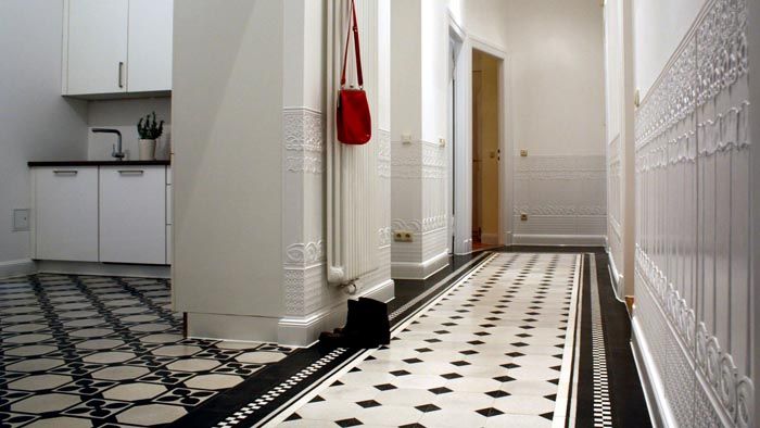 Интересни дизайни за полагане на плочки в коридора на пода: снимки на интересни решения