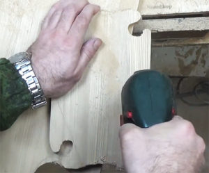 - Вземете две дъски от един и същ периметър с дебелина 15-20 мм. На един от тях скицирайте ножовете, които ще се съхраняват в стойката. За да направите това, прикрепете ножовете на свой ред и кръжете самите остриета с молив.