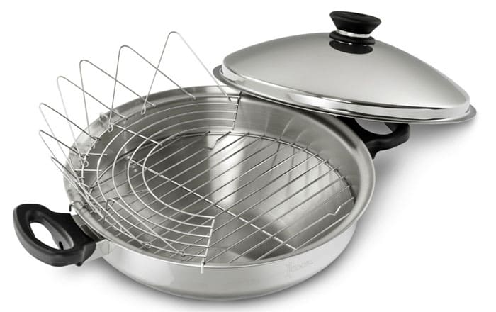 Методът ви позволява да използвате водно уплътнение между гърнето и капака му. Включените аксесоари позволяват на взискателния готвач да готви и пържи.
