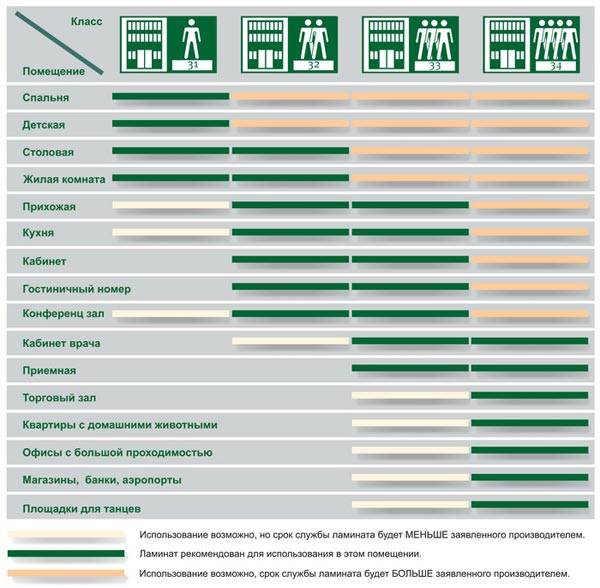 32 - има висока потребителска производителност и естетика. Може да се инсталира в търговска среда при умерени условия на натоварване. Тогава експлоатационният живот ще варира от три до пет години. Този клас е чудесен за домашна употреба и в райони с голям трафик като кухня, коридор, коридоросвен това може да се експлоатира без загуба на външен вид до 15 години. Това е най-популярното решение както за дома, така и за офиса.