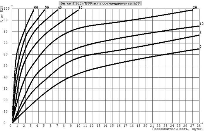 Скоростта на втвърдяване не се променя по права линия и зависи от външната температура. Изчислява се по график, който е създаден за различни топлинни показатели. Струва си да се вземат предвид колебанията на ден и да се вземат предвид минималните температурни показатели. Постиженията на показатели над 35 ⁰С топлина се постигат чрез нагряване.